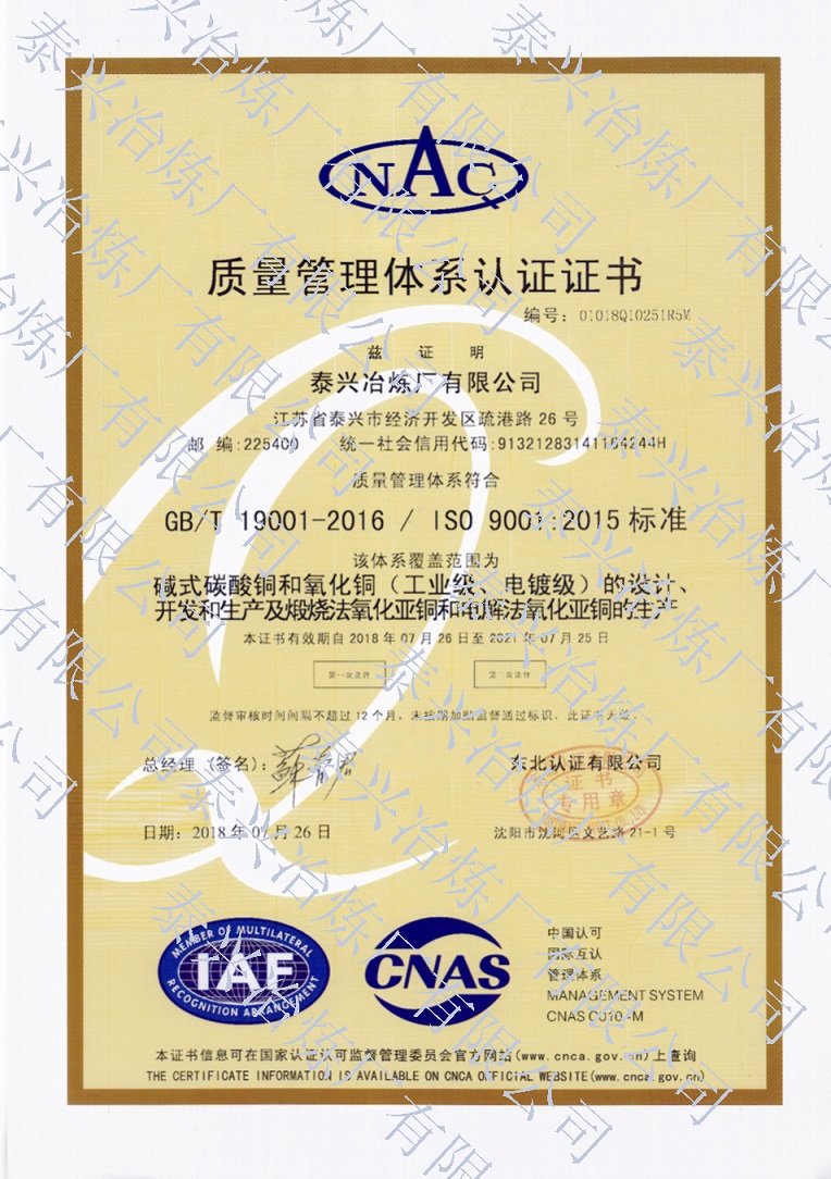 是我國《工業(yè)氧化亞銅》、《工業(yè)堿式碳酸銅》、《工業(yè)活性氧化銅》行業(yè)標(biāo)準(zhǔn)的起草單位